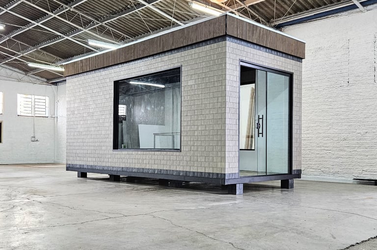 Os estúdios são ideais para uso urbano, rural ou litorâneo, combinando design moderno com praticidade. A construção usa concreto fluido e barras de aço para segurança, com instalações elétricas e hidráulicas de fácil acesso, facilitando manutenção e modificações futuras. O projeto prioriza o aproveitamento máximo do espaço interno, com áreas como sala de estar, bancada, banheiro, dormitório, terraço e deck frontal.